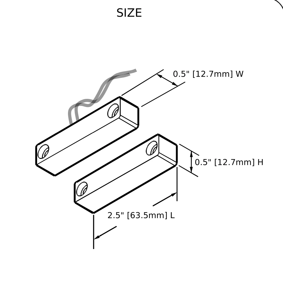 Surface Mount Contact -2 1/2" L X 1/2" W X 1/2" H, 12" Jacketed Leads - closed loop
