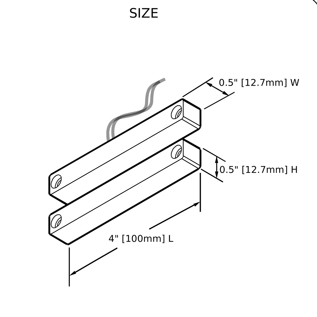 [100 mm L x 12.7 mm W x 12.7 mm H]