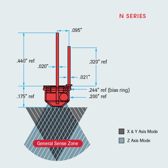 The N Series switch can also be used as a close tolerance ferrous metal proximity sensor (no magnet actuator required).