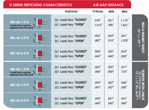 N SERES: Switching characteristics the target moves closer (a), this normally open switch will CLOSE at the air gap distance (d), and OPEN when the target moves away (b).
